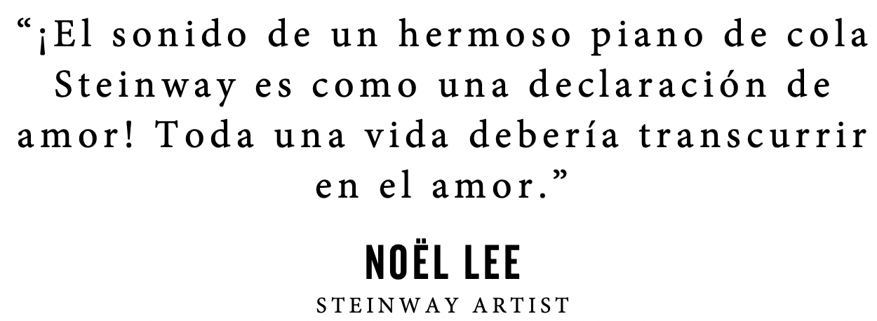 Cita de Noël Lee que habla sobre música y amor, con el nombre y profesión del artista, sobre fondo blanco con texto en negro.